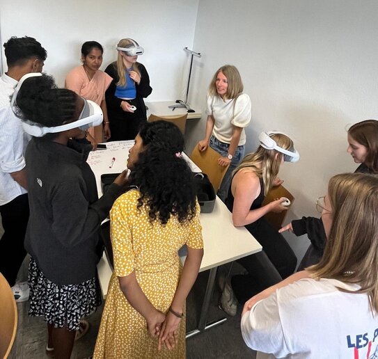 In addition, virtual reality glasses were used at a table, in which video presentations on the topic were available, which had previously been filmed by students, supported by the Digital Learning and Services Center at katho and CHRIST.
