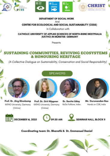 - katho and CHRIST University to open the Centre for Ecological and Social Sustainability / CESS in November 2024