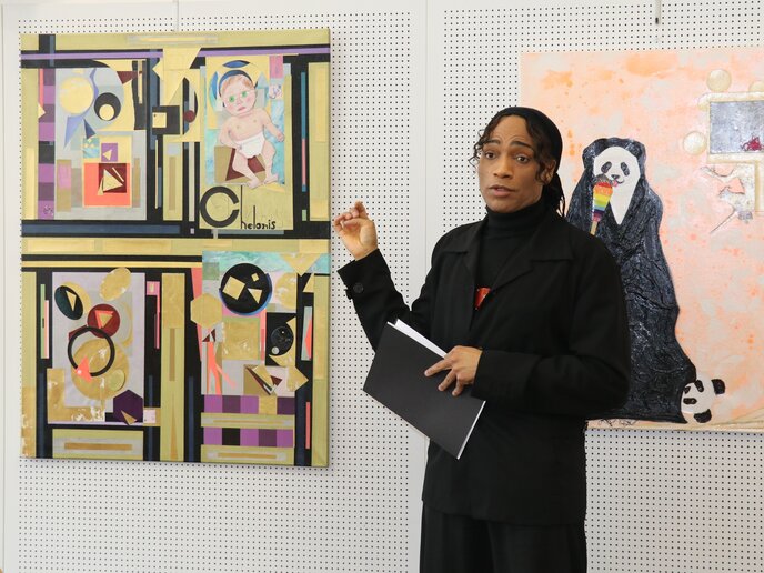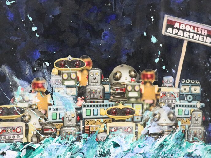 Chelonis R. Jones, geboren in Kalifornien und aufgewachsen in New York, ist ein außergewöhnlicher Künstler. Ein Multitalent, das als Produzent und Musiker weltweit Erfolge feierte – und dabei ein Maler, der sich mit Leidenschaft gerade den „unmenschlichen“ Zuständen unserer Gesellschaft widmet. Seine Arbeiten sind oft bunt, knallig und humorvoll, doch zeugen sie von feinsinnigen Beobachtungen und verarbeiten neben gesellschaftlichen Missständen aus Vergangenheit und Gegenwart auch persönliche Diskriminierungserfahrungen.