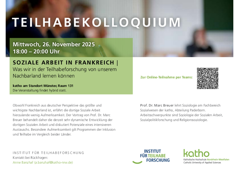Teilhabekolloquium: Soziale Arbeit in Frankreich – Was wir in der Teilhabeforschung von unserem Nachbarn lernen können