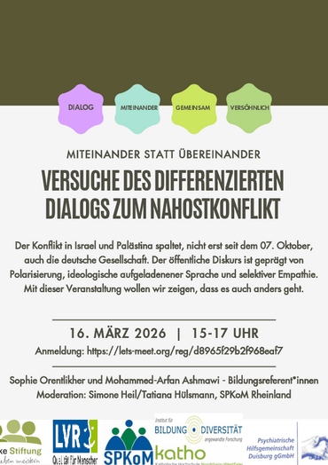 Die Veranstaltung richtet sich an alle Interessierten, die den aktuellen Diskurs reflektiert, empathisch und dialogorientiert betrachten möchten.