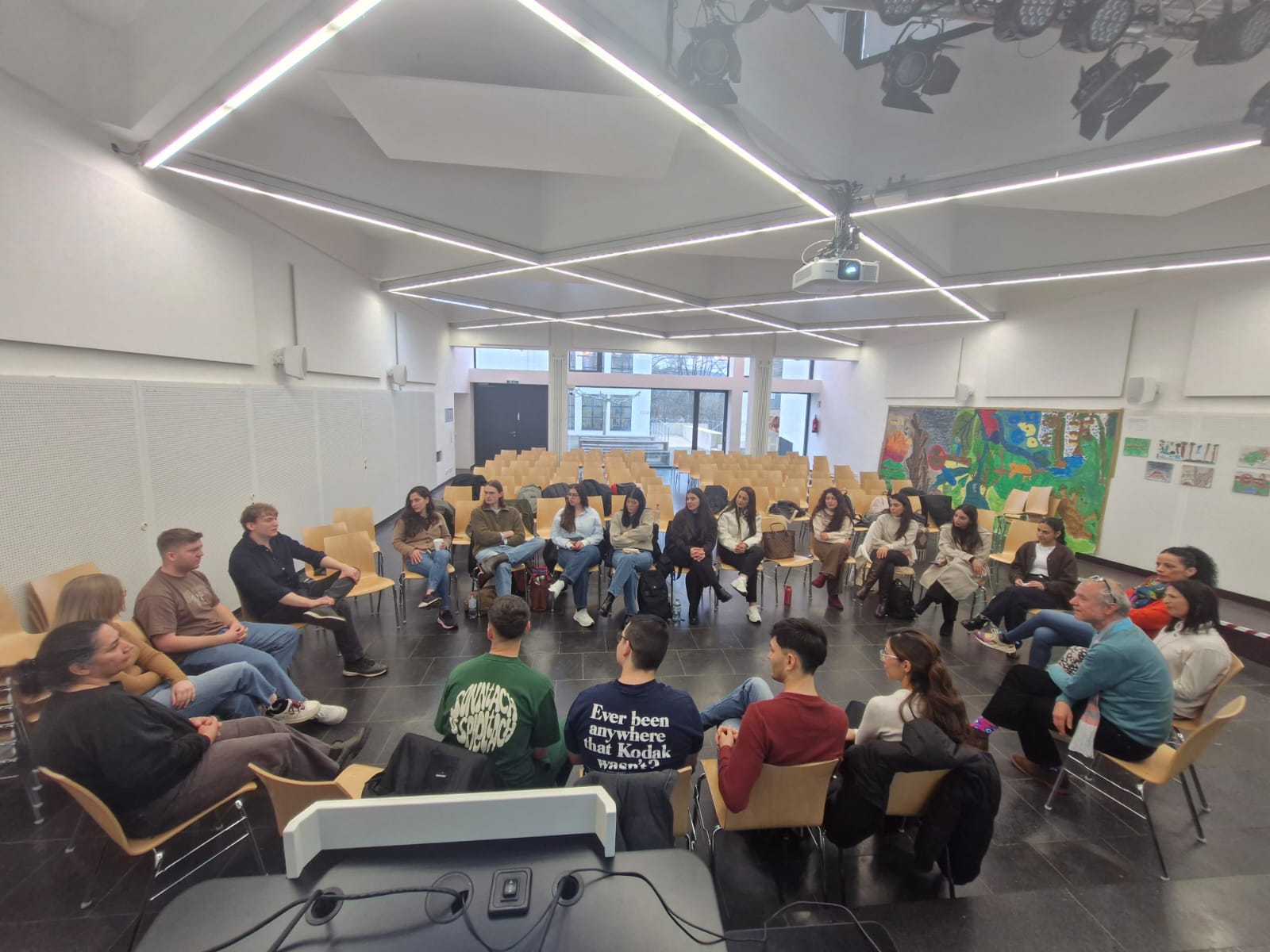 Mit Blick auf das letztgenannte Themenfeld konnte der Besuch des Integrationshauses (InHaus) in Köln-Kalk, das sich als ein Ankommensort für migrierende Menschen versteht, einen Einblick in die praktische Arbeit vermitteln sowie im Gespräch mit der Gründerin und Leitern Elizaveta Khan aktuelle Debatten auf diesem Gebiet in Deutschland erörtert werden.