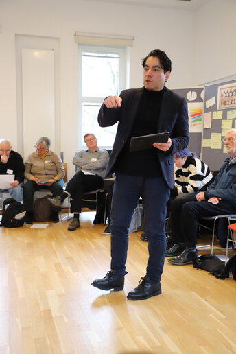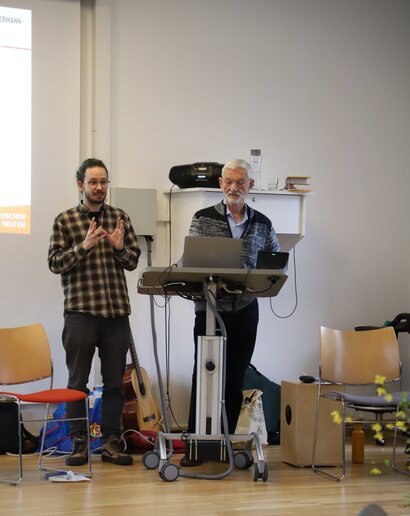 Oliver Gunia, Krankenpfleger und Fachtherapeut für Wundversorgung, stellte die Wundambulanz für wohnungslose Menschen der Benediktiner-Abtei St. Bonifaz in München vor. Pfarrer Peter Kossen sprach über die Rechtsberatung für Arbeitsmigrant_innen insbesondere in der Fleischindustrie durch den Verein „Aktion Würde & Gerechtigkeit e.V.“ in Lengerich. Bernhard Mülbrecht und Dean Loy berichteten über den Stand des Projekts „Cared.Wende. Neue Wege in der Versorgung schwer kranker und pflegebedürftiger wohnungsloser Menschen in Münster“, das konkrete Schritte für (palliativ-)pflegerische Versorgungsstrukturen erarbeitet. Aber auch Künstliche Intelligenz war ein Thema des diesjährigen Seminars. Prof.in Dr.in Gesa Linnemann diskutierte mit den Teilnehmenden über den Umgang mit KI in der Sozialen Arbeit.