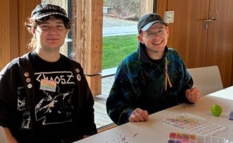 Zwei Mitglieder des AStA und StuPa Paderborn beim Kettchen basteln. Foto: katho Paderborn/Larissa Rieke-Nutz