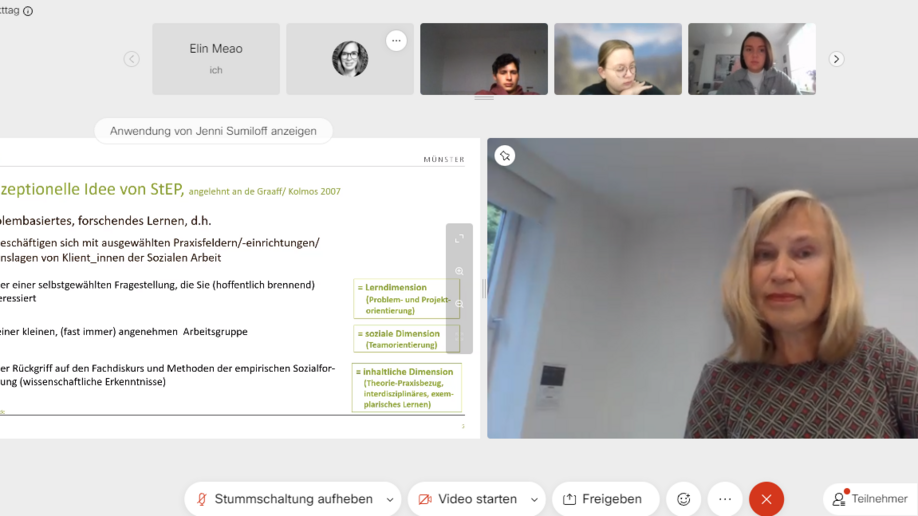 Nach der gemeinsamen digitalen Einführung am Vormittag haben sich die Studierenden der Sozialen Arbeit am Nachmittag schon das erste Mal mit ihren Begleitseminaren getroffen, natürlich unter Einhaltung aller Abstands- und Hygieneregeln. Neben dem Kennenlernen standen hier schon ein erster inhaltlicher Austausch über die Interessen der Studierenden und mögliche Projektthemen im Mittelpunkt.