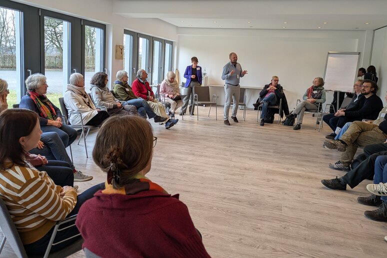 Der öffentliche Auftakt erfolgte bei einer Kick-off-Veranstaltung am 6. und 7. Februar in der Katholischen Akademie Schwerte. Aufbauend auf den Bedarfen und kontextuellen Herausforderungen vor Ort wurden dort gemeinsam Unterstützungsbedarfe erarbeitet und ein Umsetzungsplan implementiert. Kern der Unterstützung sind Bildungs- und Vernetzungsangebote sowie Vor-Ort-Besuche bei den Teilnehmenden.