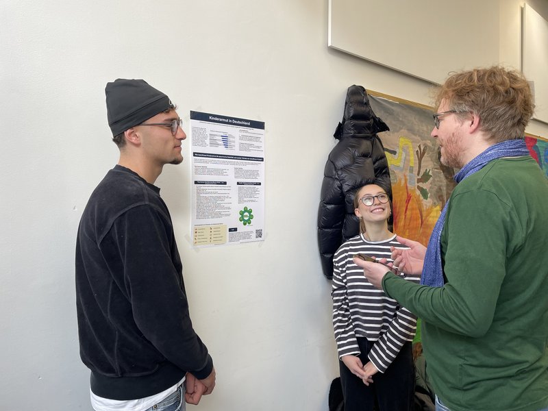 „Die 180 Studierenden im Regel- und Dual-Studiengang haben die ersten fünf Wochen ihres Studiums in einem von acht Lotsenseminaren projektförmig in Kleingruppen zusammengearbeitet. Sie wurden aufgefordert, innerhalb des Oberthemas ‚Armut‘ zu einer selbst erarbeiteten Fragestellung zu recherchieren, Befunde zu systematisieren und aufzubereiten sowie diese dann nach in diesem Posterwalk zu präsentieren.“