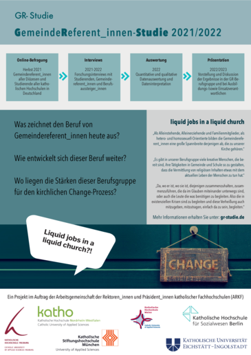 Für die Studie wurden deutschlandweit Gemeindereferent_innen und Studierende der Religionspädagogik und anderer Studiengänge, die auf diesen Beruf ausgerichtet sind, online befragt.