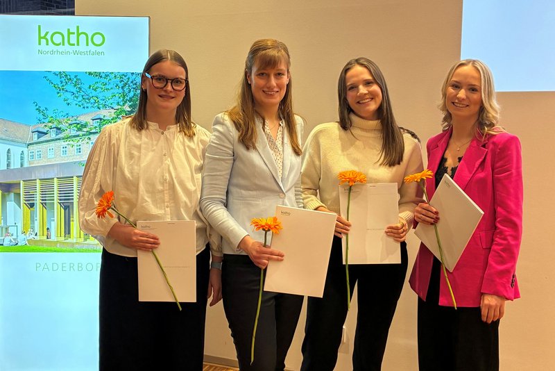 Prämierung der besten Bachelorabschlüsse aus 2024 und 2025: Die vier Preisträgerinnen sind Johanna Franke, Stefanie Eulig, Merle Weller und Rebecca Otto (v.l.n.r.). (Foto: katho/LRN)