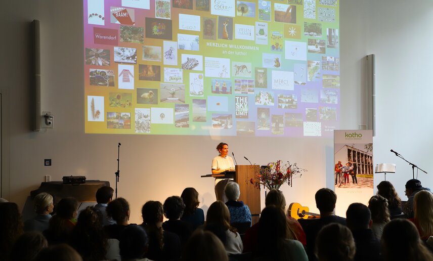 Am Fachbereich Sozialwesen der katho am Standort Münster beginnen zum Wintersemester 241 Studierende in den Bachelor- und 34 Studierende in den Masterstudiengängen das Studium der Sozialen Arbeit oder der Heilpädagogik/Inklusiven Pädagogik. Bei der Immatrikulationsfeier am 23. September 2024 wurden sie von Dekanin Prof.in Dr.in Anja Kannegießer begrüßt und zugleich ermutigt, sich neben dem Studium aktiv in das Hochschulleben einzubringen. Bürgermeisterin Angela Stähler verwies in ihrem Willkommensgruß der Stadt Münster auf das vielfältige und tolerante Zusammenleben in der jungen Stadtgesellschaft. Als Vertreterin der Studierendenschaft warb Lara Pauer für studentische Gremien und verschiedene Campus-Aktivitäten.