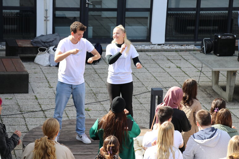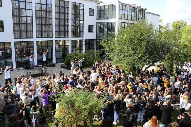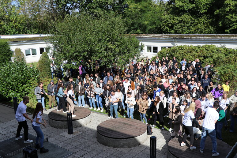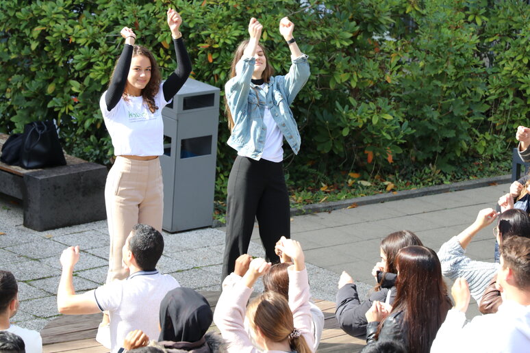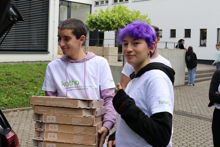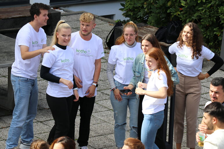 "Laut" wurde es tatsächlich direkt im Anschluss an die Begrüßung: Im schönen Innenhof der katho stimmte ein Tutor_innen-Team die frischgebackenen Studierenden mit Musik auf den Rhythmus der katho ein. Neben Informationen und Info-Materialien bekamen die Studierenden in der Einführungswoche auch die Möglichkeit, sich beim gemeinsamen Pizza-Essen in der katho sowie beim abendlichen Ersti-Grillen im Innenhof besser kennenzulernen und die Stadt bei der Ersti-Ralley für sich zu entdecken.