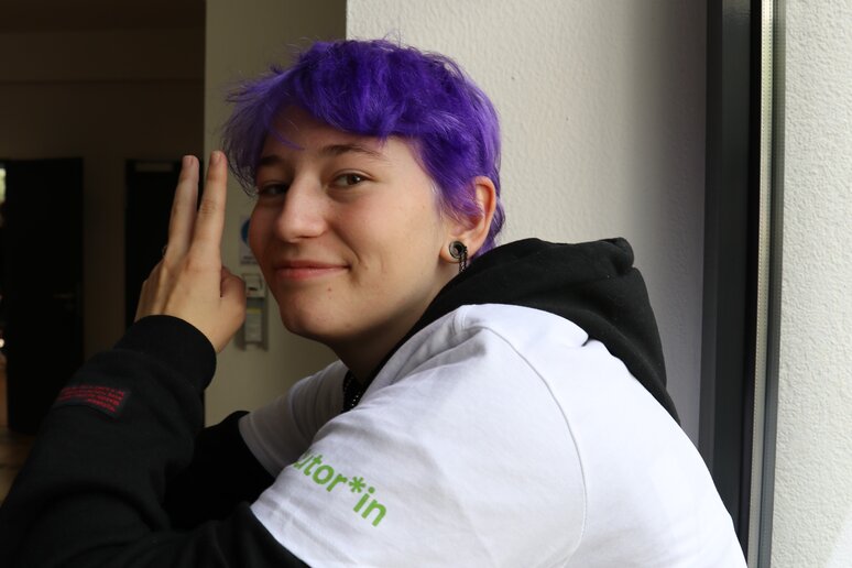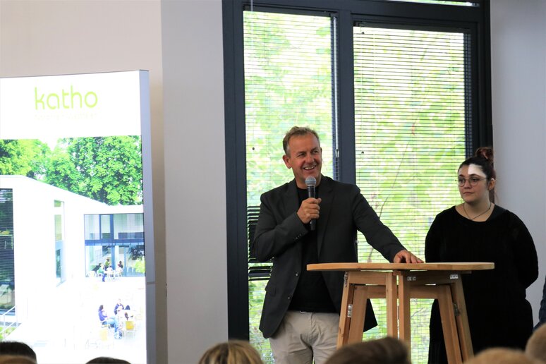 Auf die Frage, was man den jungen Erstsemestler_innen mit auf den Weg geben sollte, weiß Julia Breuer-Nyhsen, wissenschaftliche Mitarbeiterin und Koordinatorin des neuen Studiengangs "Soziale Arbeit B.A. kompakt", eine gute Antwort: "Seien Sie hier. Seien Sie präsent", in Anlehnung an die Pandemie, in der das bunte studentische Leben an der katho einzuschlafen drohte. Noch sei das Leben nicht ganz wieder erwacht in den Gängen; es sei nun an der neuen Generation Studierender, dem studentischen Betrieb wieder Leben einzuhauchen. Julia Breuer-Nyhsen fasst es zusammen: "Stören Sie uns bei der Arbeit, weil Sie in den Gängen laut sind!"