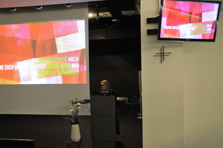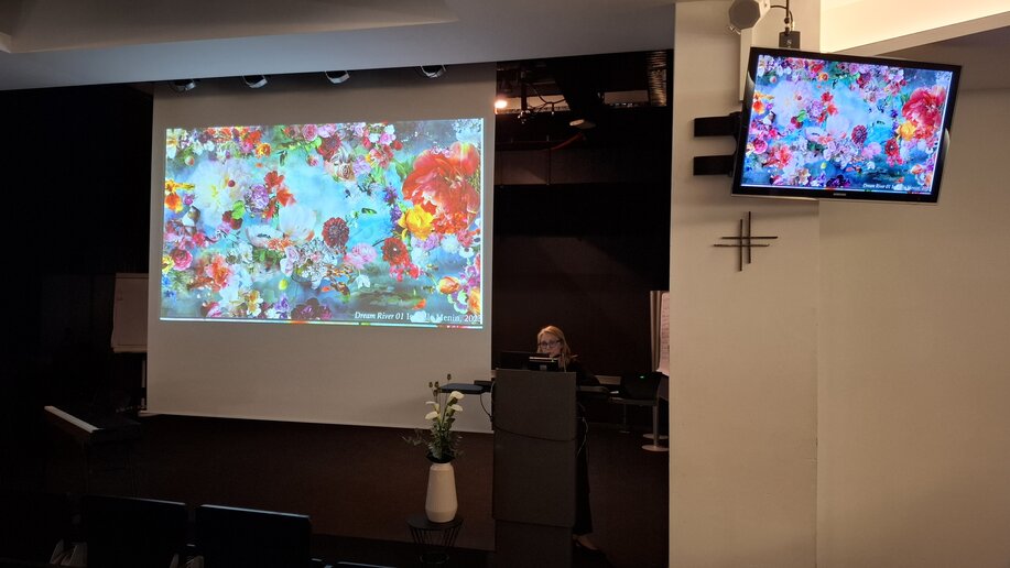 Nach einem Grußwort des Prorektors Michael Isfort, in dem er die Wege der Prof.in Dr. Anna Zembala zur katho hin vorstellte und ihren Werdegang am Fachbereich Revue passieren ließ, stellte sie mit Hilfe vieler verschiedener Kunstwerke ihren Lebensweg dar. Sie gab den Zuhörenden auf diese Art einen besonderen Einblick in ihr Leben. Sie stellte dar, wie sehr Abschiede schmerzen können, aber auch die Möglichkeit eröffnen, sich Neuem zu widmen. So ganz wird die katho aber noch nicht von Prof.in Dr. Anna Zembala Abschied nehmen müssen, da sie im kommenden Wintersemester den Fachbereich im Rahmen eines Lehrauftrags noch erhalten bleibt.