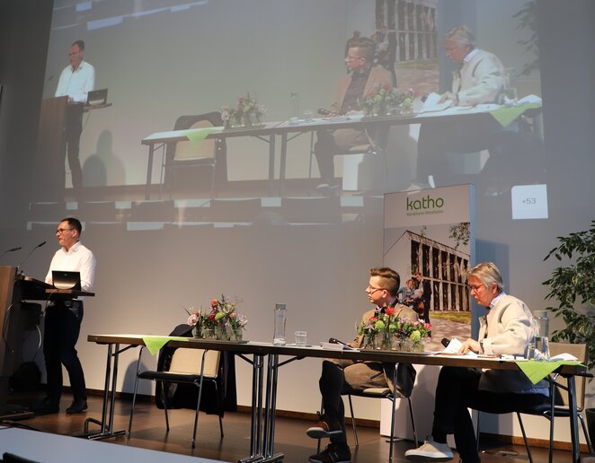 Das große Interesse an der Veranstaltung war dabei sicher der Aktualität des Themas geschuldet: Dem russischen Angriffskrieg auf die Ukraine. Zu Gast war dazu Prof. Dr. Georg Albers, Politikwissenschafter, Sozialpädagoge und Lehrender an der katho in Münster. Von 2016 bis 2019 war er in der Ukraine als „Dialogue Faciliation Officer“ im Rahmen einer OSZE-Mission tätig und kennt daher die Hintergründe des aktuellen Kriegsgeschehens aus erster Hand.