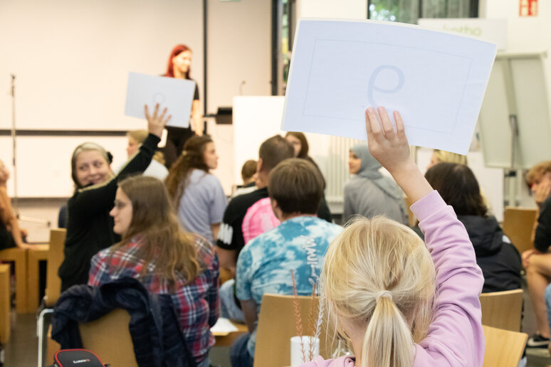 In diesem Jahr widmete sich der katho Kultursommer dem Spiel(en) als kultureller Praxis. Die Teilnehmenden waren in unterschiedlichen Szenarien zum Ausprobieren eingeladen, etwa beim kreativen Schreiben mit der Aachener Kinderbuchautorin Sigrid Zeevaert, in Theaterworkshops oder in der Entwicklung künstlerischer Collagen nach dem Zufallsprinzip. Erstmals wurde neben der Theater- und der Literaturwerkstatt auch eine Filmwerkstatt mit einem besonderen Fokus auf das Thema Schnitt angeboten. Ergebnis ist ein Kurzfilm, der auf dem filmischen Interviewmaterial aus dem Projekt „Miteinander ins Gespräch kommen – Soziale Arbeit heute und vor 30 Jahren“ basiert. Er wird im Rahmen des Festakts zum 30jährigen Jubiläum des Aachener Sozialkonvents (ASK) am 15.11.24 in der Aula der katho öffentlich präsentiert.