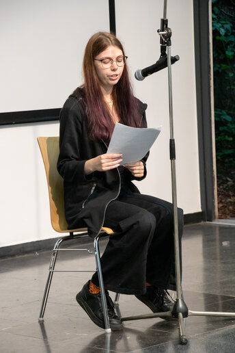 Von der Werbung über die Moderation, Punktevergabe und Siegerehrung bis hin zum Kuchenverkauf und einer Spendenaktion für den Förderverein der katho war der Poetry Slam bereits im Sommersemester akribisch von Studierenden vorbereitet worden. Für eine besondere Atmosphäre am Veranstaltungstag sorgten nicht zuletzt die musikalischen Beiträge von Jana Schwartz (Klavier/Gesang).