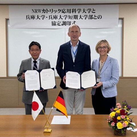 Auf dem Programm stand zunächst ein Besuch an der Hyogo University in Himeji im Süden Japans. Mit der Hyogo University verbindet die katho seit 2015 eine enge Partnerschaft im Rahmen eines akademischen Kooperationsabkommens. Anlässlich dieses Jubiläums und der engen Zusammenarbeit unterzeichneten beide Hochschulen nun ein neues „Memorandum of Understanding“ (MOU). Hierin teilten katho und Hyogo University ihre gemeinsame Vision für Bildung, Forschung und Austausch.