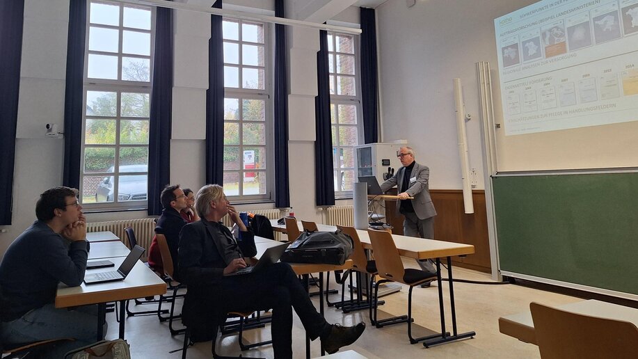 In den nun folgenden Forschungspanels gaben Monika Laumann, Prof. Dr. Friedrich Dieckmann, Franziska Sawitzki, Nadine Rosenfelder, Prof. Dr. Sebastian Wen, Prof. Dr. Andreas Henkelmann Prof. Dr. Werner Schönig, Prof. Dr. Marc Breuer, Prof. Dr. Johannes Krell und Prof.in Dr.in Agnes Blome einen Einblick in ihre laufenden Forschungsprojekte.