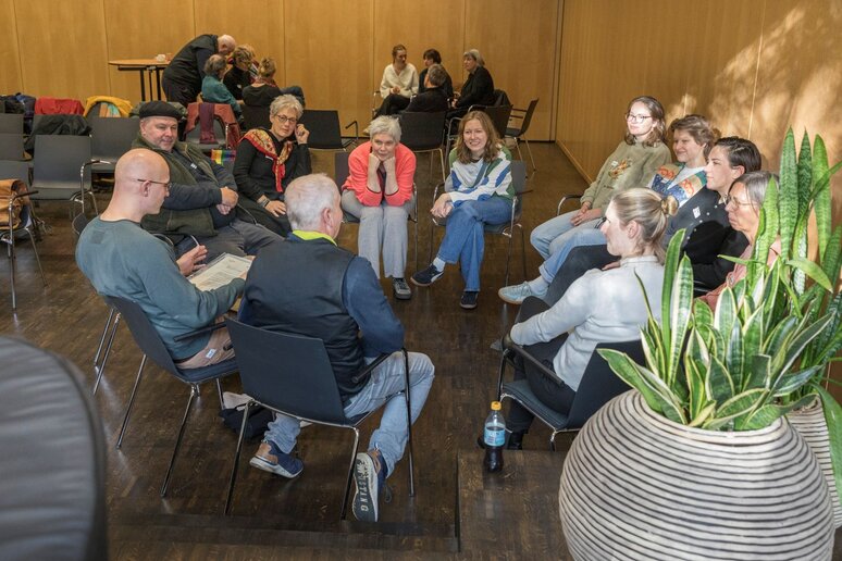 In zwei analytischen Großgruppensitzungen, die - geleitet von der erfahrenen Supervisorin und Gruppenanalytikerin Marita Barthel-Rösing - jeweils am Ende des Tages einen Raum für Reflexion boten, in dem offen gebliebene Gedankenfäden gesponnen und aufgekommene emotionale Belastungen ausgesprochen werden konnten, ging es unter anderem um die Sorge, in welcher Form das in der Auseinandersetzung mit den nationalsozialistischen Verbrechen Gelernte sich in Handlung übersetzen lasse. Und es ging auch hier um das Fehlen, Verschwinden, Sich-Entziehen, das einen beim Thema Behinderung und psychische Erkrankung im Kontext des Nationalsozialismus und bis in die Gegenwart einholt.